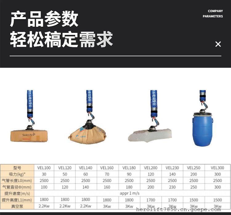 汉尔得卷膜搬运 提升 装箱 码垛 助力机械手—气管吸吊机vel